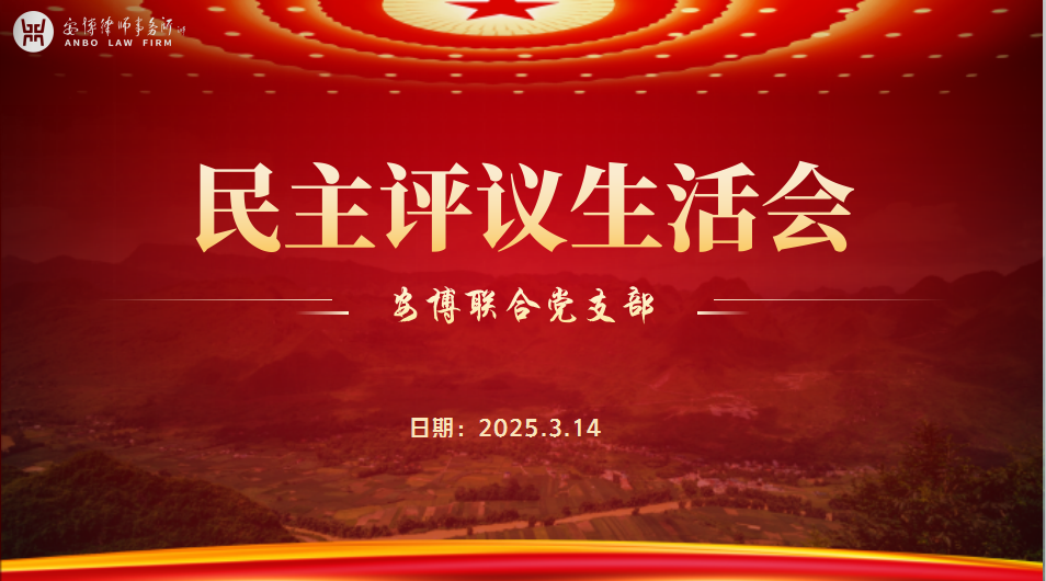 2025年3月14日,中共北京市安博律师事务所联合党支部在会议室召开民主评议生活会,此次会议旨在通过全面深入的总给与反思,提升党员律师工作效能,加强安博联合党支部建设,促进安博律所持续发展。会议由安博联合党支部书记王守亮主持。